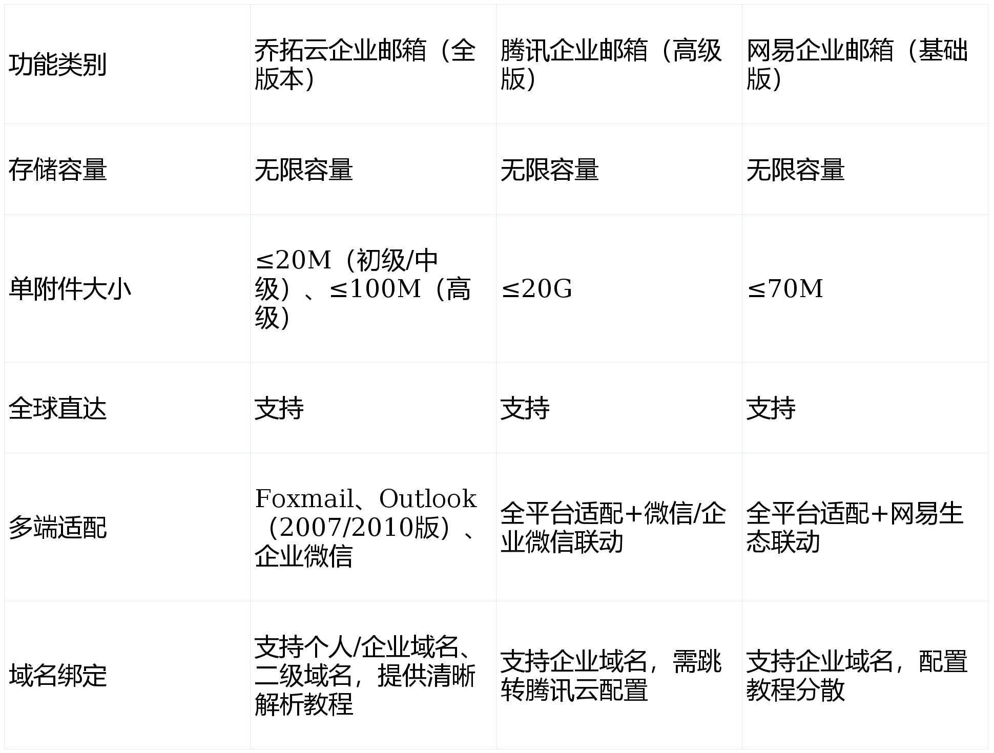 网易70M附件也能满脚大都中等文件需求,新手也能快速排查。深耕邮件平安范畴多年,无限容量不消按期删汗青订单邮件,笼盖从草创团队到中型企业的焦点场景:《2024中国企业邮箱平安性研究演讲》显示,中型企业可侧态或平安劣势。腾讯20G超大附件适合需传输高清视频、大型压缩包的企业,